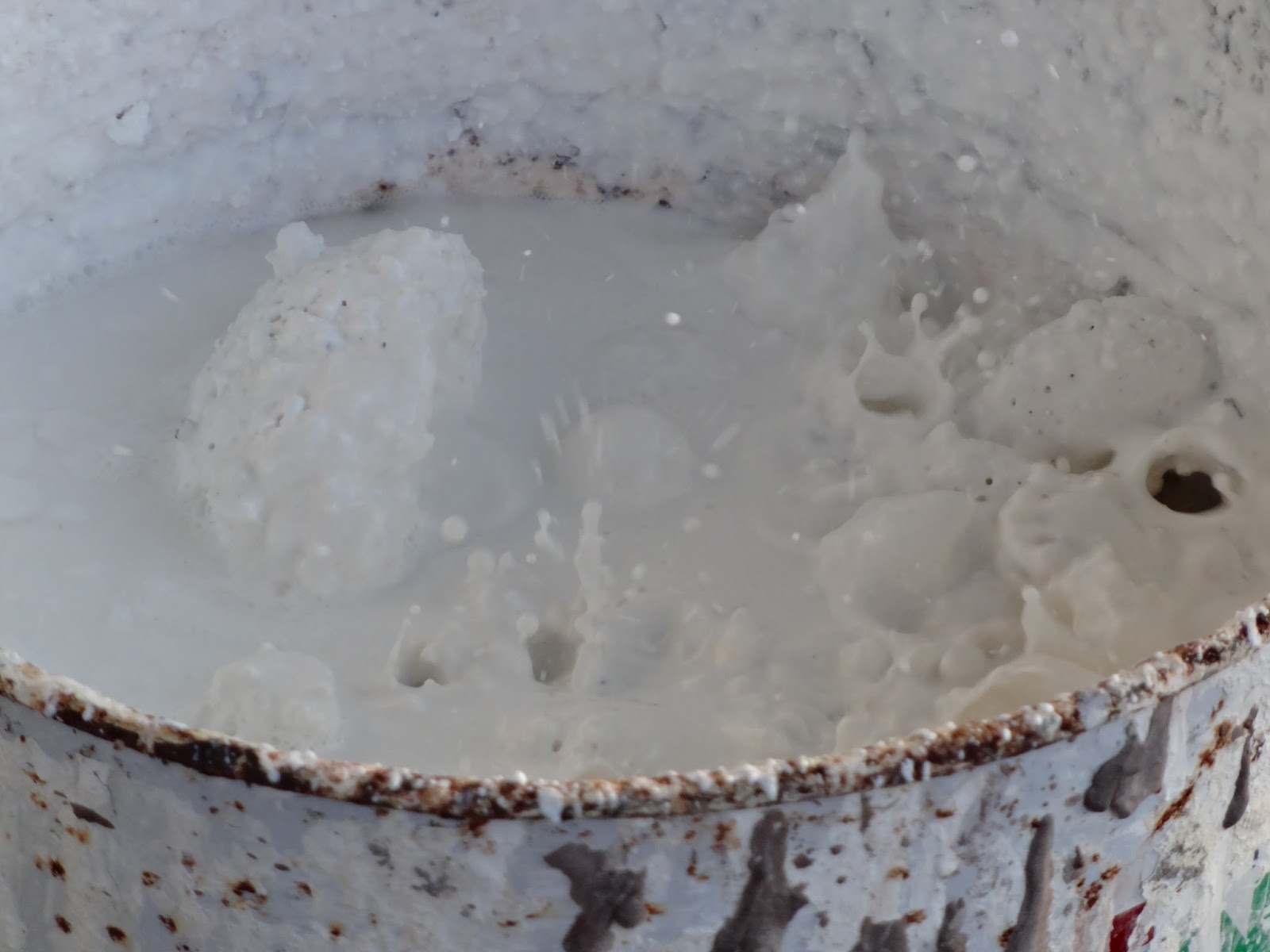 Uma arroba de pedra de cal e uma hora para se transformar em cal aérea. Três semanas a estagiar, depois de extinta. Cento e oitenta metros quadrados de muro e tanque para caiar. Uma mão cheia de voluntários. Alguns com vasta experiência do ofício e todos com vontade de devolver àquelas paredes o branco obstinado da arquitectura do sul. Seis da manhã, pela fresca, em meados de Julho de um ano ímpar. Três camadas de leite de cal sobrepostas em outros tantos dias. Quanta magia, do branco translúcido ao branco opaco. Assim se renova a luz da cal na nossa horta.