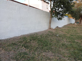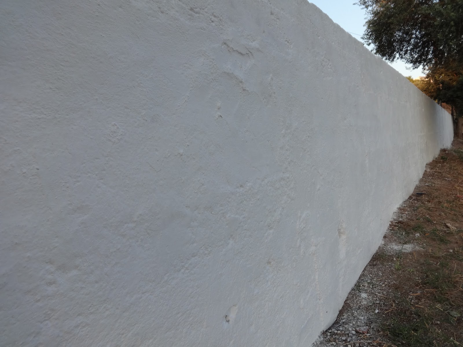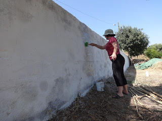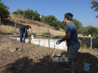 Outubro 2011 - Devolver o branco da cal há muito desaparecido das paredes do muro e do tanque da horta foi uma das primeiras tarefas a que deitámos mão. Em Julho de 2013, voltámos a devolver a luz da cal à nossa horta. A nova campanha será em Julho de 2015.